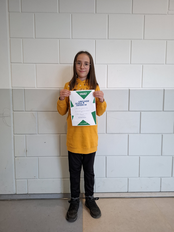 Alle klassen- und schulbesten Vorleser*innen wurden mit einer Urkunde ausgezeichnet. Die Schulsiegerin erhält beim Kreisentscheid zusätzlich ein besonderes Buchgeschenk als Preis. Aktuelle Lesetipps und Bücherlisten zu verschiedenen Themen stellt der Vorlesewettbewerb außerdem auf seiner Webseite vor.