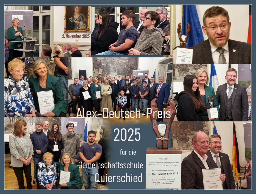 Erstmals wurde er 2017 von der Alex-Deutsch-Stiftung ausgelobt und dann, mit Ausnahme des Corona-Jahres 2021, turnusgemäß im Abstand von zwei Jahren vergeben. Bei allen vier Verleihungen des Alex-Deutsch-Preises als Anerkennung für Bemühungen um eine freiheitlich demokratische Grundordnung, für eine tolerante Gesellschaft, gegen Rassismus und gegen Antisemitismus sorgten die jeweiligen Schulbands der Alex-Deutsch-Schule, Lehrer wie Schüler, für die passende musikalische Umrahmung.