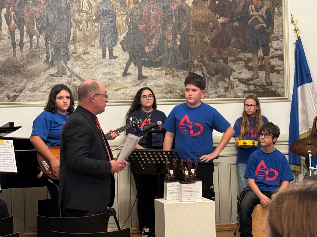 Alle Gäste, Landrat und Laudator Sören Meng sowie Überraschungs-Ehrengast Doris Deutsch zeigten sich bewegt über die musikalische und sozusagen generationenübergreifende Umrahmung einer erneut beeindruckenden Veranstaltung, in welcher die Evangelische Kita Ottweiler-Steinbach, die Gemeinschaftsschule Quierschied mit ihrem „Projektmotor“ Dr. Harald Klein und der Einzelpreisträger Professor Roland Rixecker für ihr ganz besonderes Engagement geehrt und ausgezeichnet wurden.